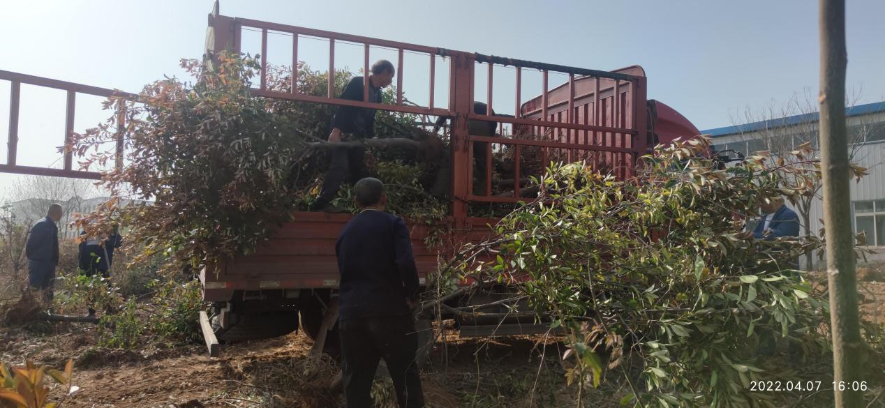 作為宜陽縣企業(yè),我公司董事長認(rèn)為有責(zé)任為“山水宜居,富美宜陽”的目標(biāo)添磚加瓦。遂在今年年初與縣里溝通把我公司5000余棵紅葉石楠無償捐給宜陽縣。在縣里的操作下,宜陽縣鹽鎮(zhèn)鄉(xiāng)和我公司溝通,他們抱著“農(nóng)村森林化、道路林蔭化、庭院花果化”要求,實施綠村工程,4月2日,李寨村潘書記帶領(lǐng)鹽鎮(zhèn)鄉(xiāng)各村支部書記來我公司進(jìn)行挖樹,在挖樹的這幾天時間里,我公司安排員工呂建章全程陪同挖掘,保證挖樹捐樹順利、安全的進(jìn)行。